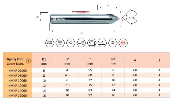 Kaplamalı Karbür HSC-HHC Freze, Extra Uzun