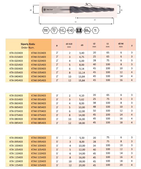 Kaplamalı Karbür HSC-HHC Freze, Extra Uzun
