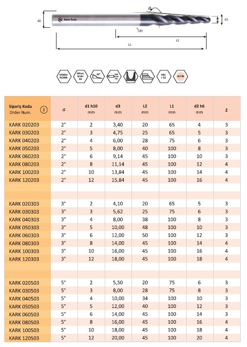 Kaplamalı Karbür HSC-HHC Freze, Extra Uzun