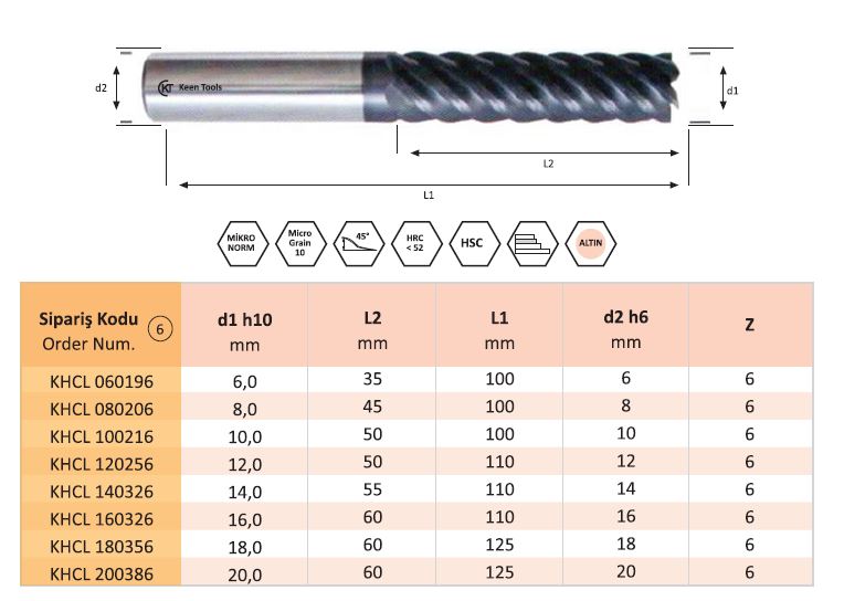 Kaplamalı Karbür HSC-HHC Freze, Extra Uzun