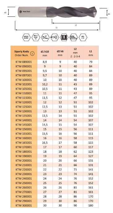 Klavuz Matkap Anma Çapları