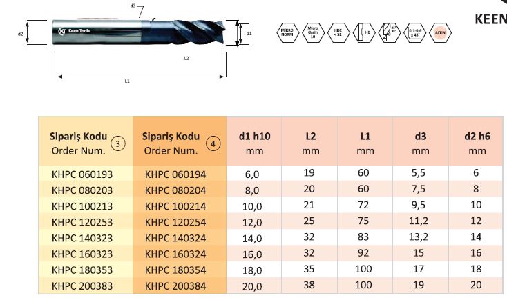 Kaplamalı Karbür HSC-HHC Freze, Extra Uzun