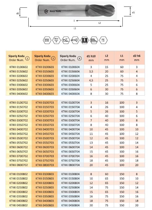 Kaplamalı Köşe Radius Karbür Freeze, Extra Uzun