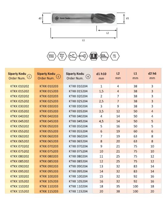 Kaplamalı Karbür Açılı Freze , Küresel 2