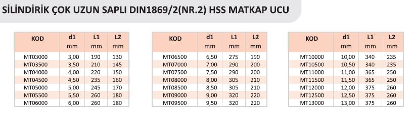 Silindirik Çok Uzun Saplı Din 1869/3 (NR.3) HSS Matkap Ucu