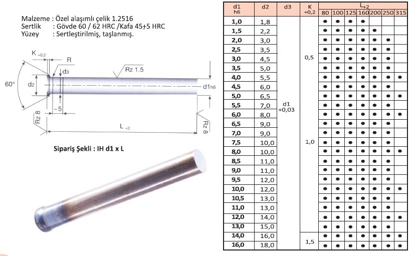 Silindir Başlı İtici Pimler Ejector Pins Is, ISM