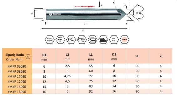 Karbür Parmak Frezeler İçin Kesme ve İlerleme Verileri