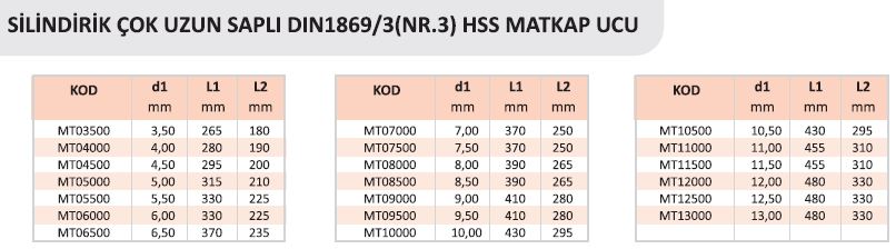 Silindirik Çok Uzun Saplı Din 1869/3 (NR.3) HSS Matkap Ucu